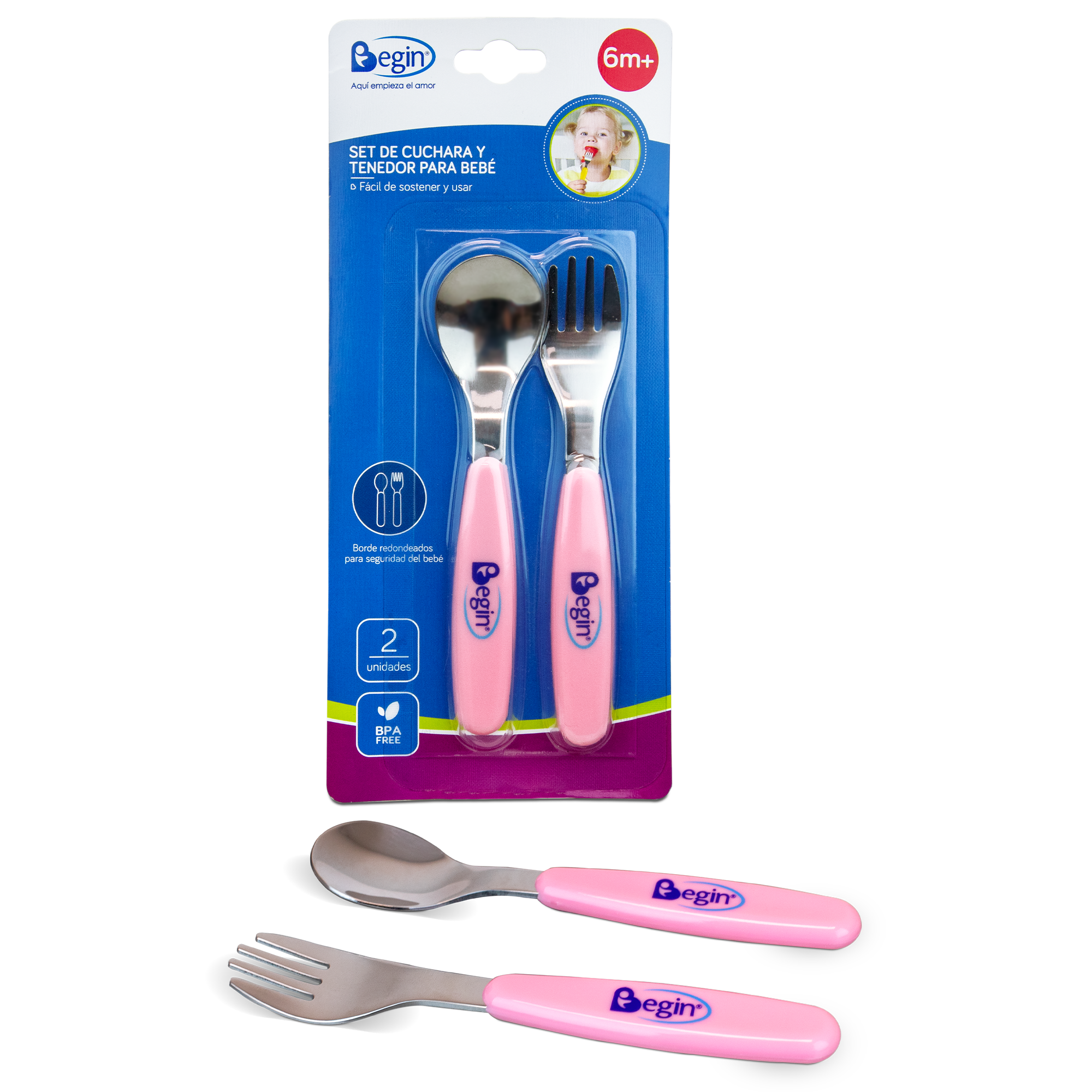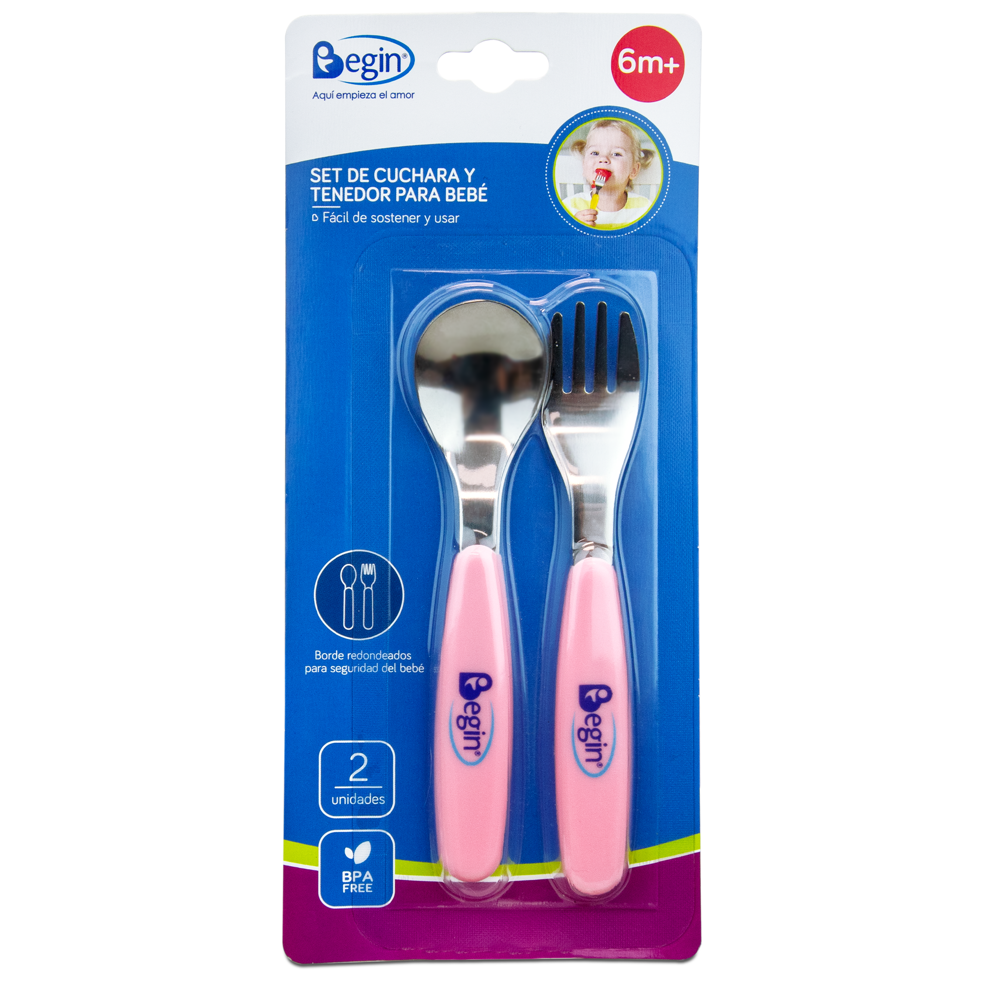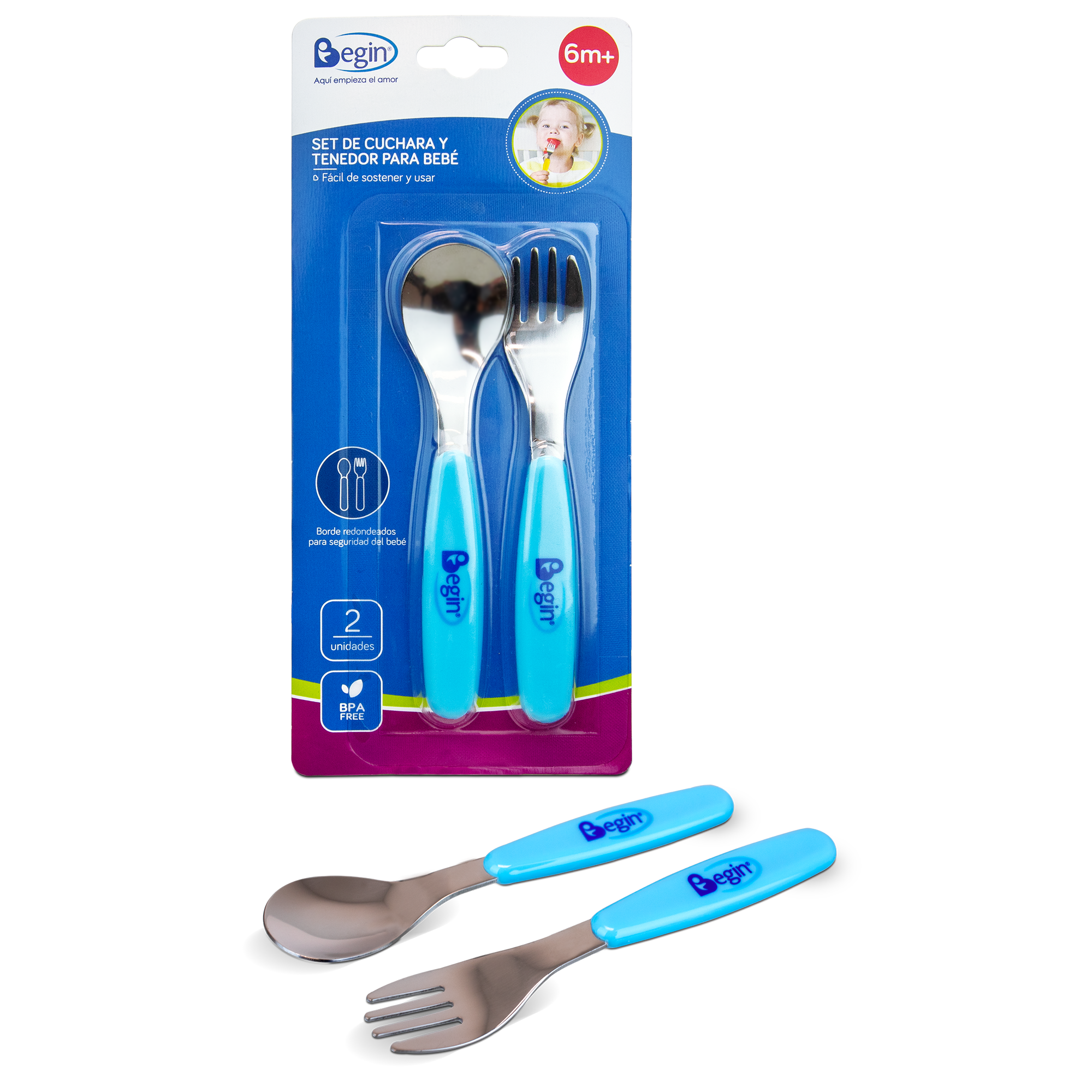 - Los cubiertos son de punta redondeada para no lastimar la boca del bebé.