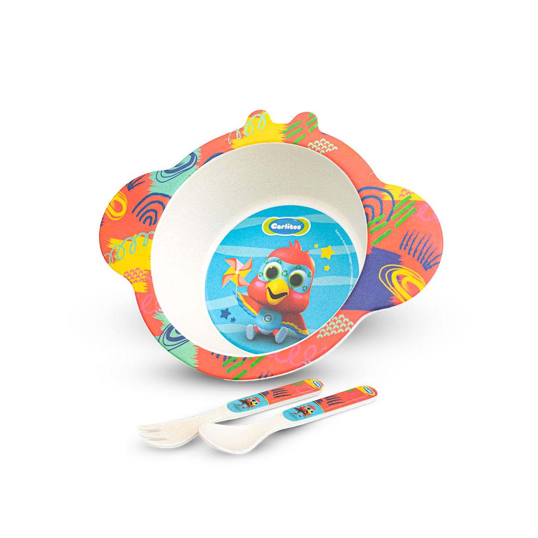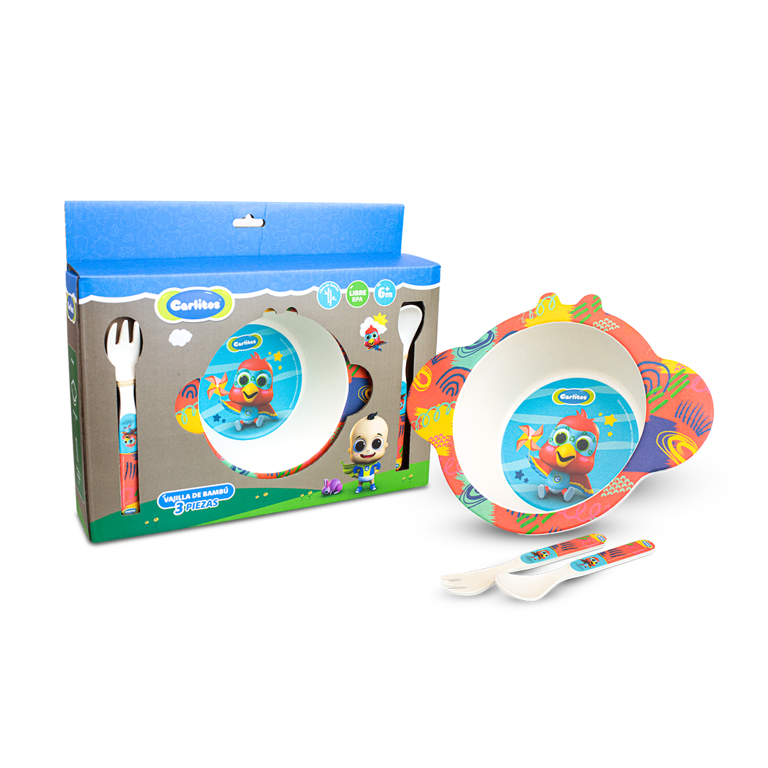 Hecho de fibras de bambú Amigable con el medio ambiente Libre de tóxicos Biodegradable Aprobado por la FDA para alimentos seguros Aptas para el lavavajilla Incluye: Plato hondo, cuchara y tenedor